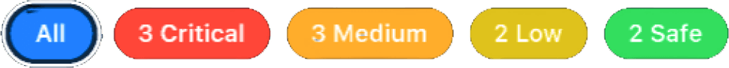 Design Solution: Used a tiered color system based on severity for alert filters- Red, orange yellow and green. Blue was used to represent unfiltered state.