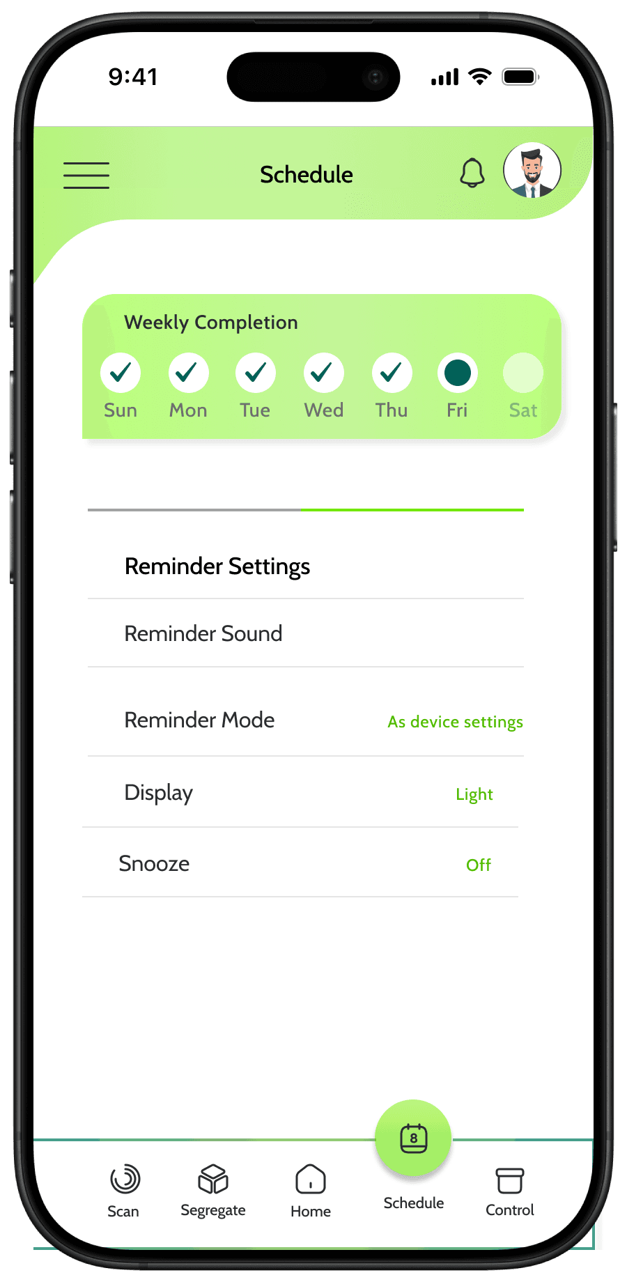 Flexible and user friendly scheduling accommodating various needs. Additional settings to add preparatory reminders.