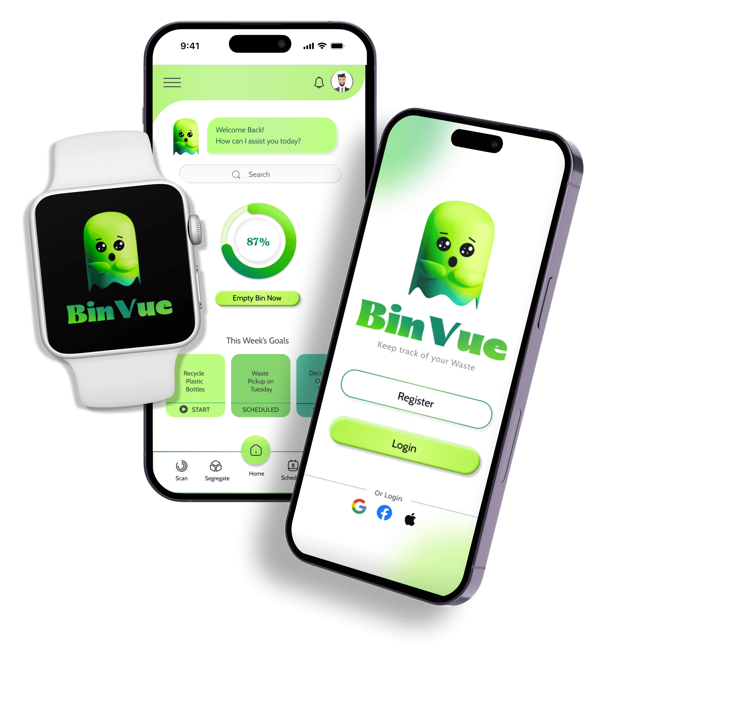 BinVue is a Mobile App designed for efficient waste management, enabling users to easily scan, segregate and schedule their waste according to their convenience.