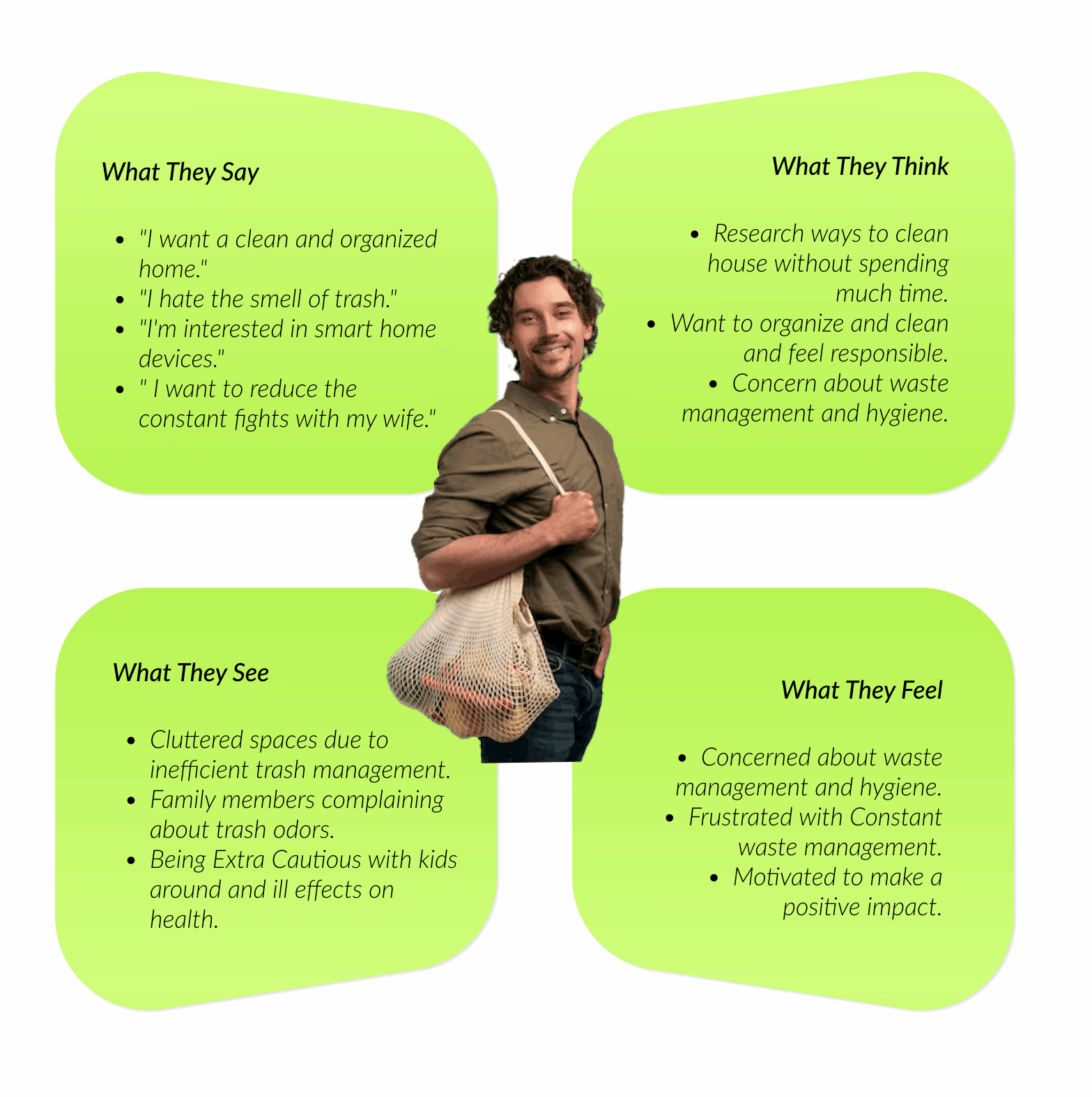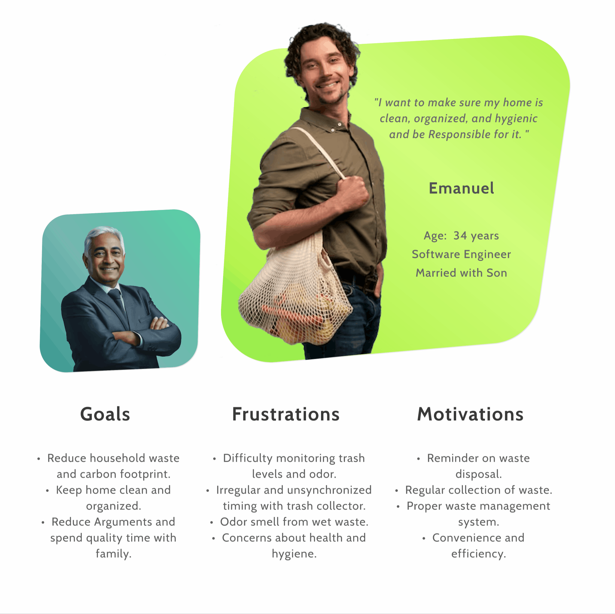 I did lot of secondary research through browsing online forums, listening various Ted Talks, and user complaints on waste management. I channeled the research to find user pain points and frustrations at individual level.