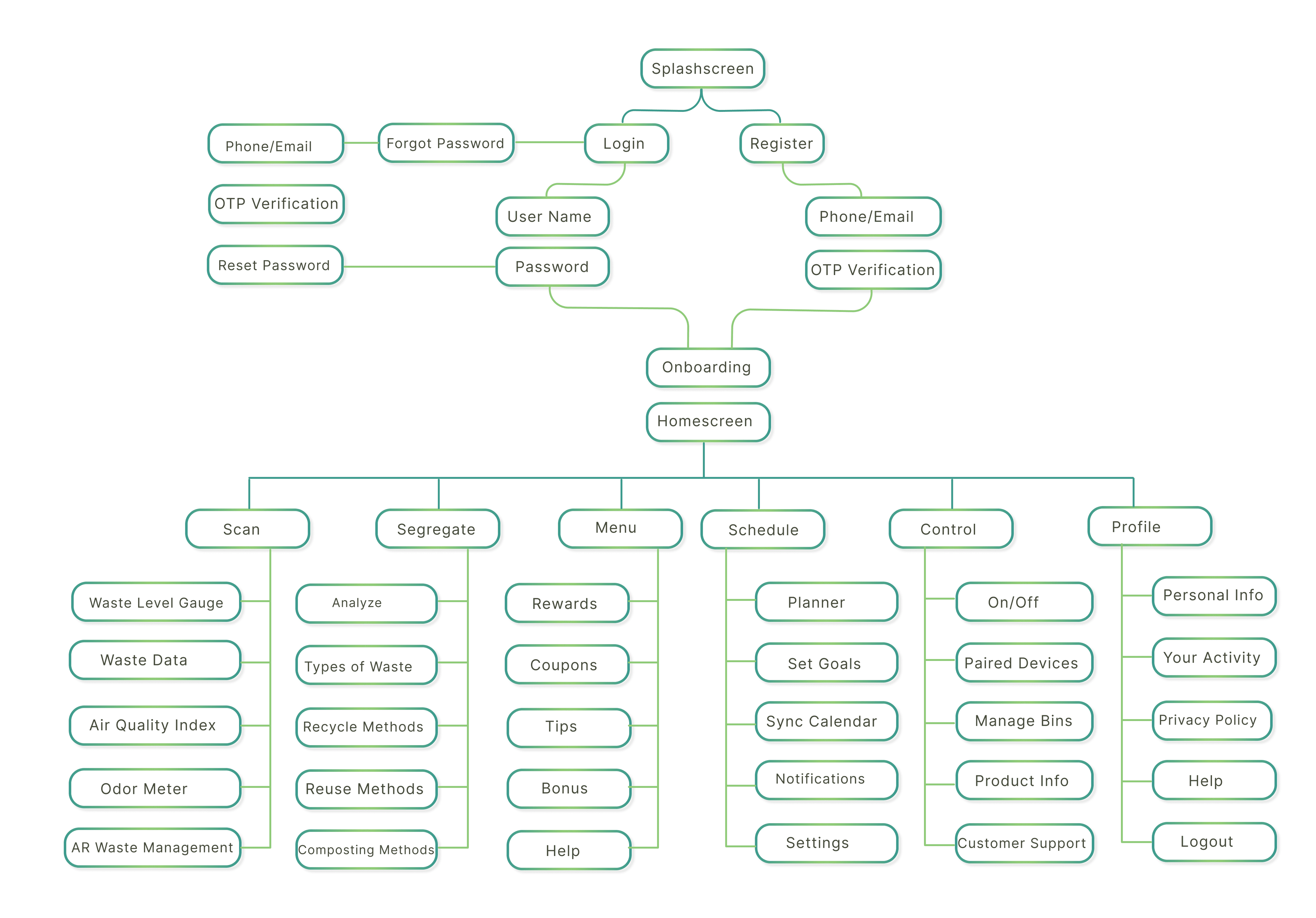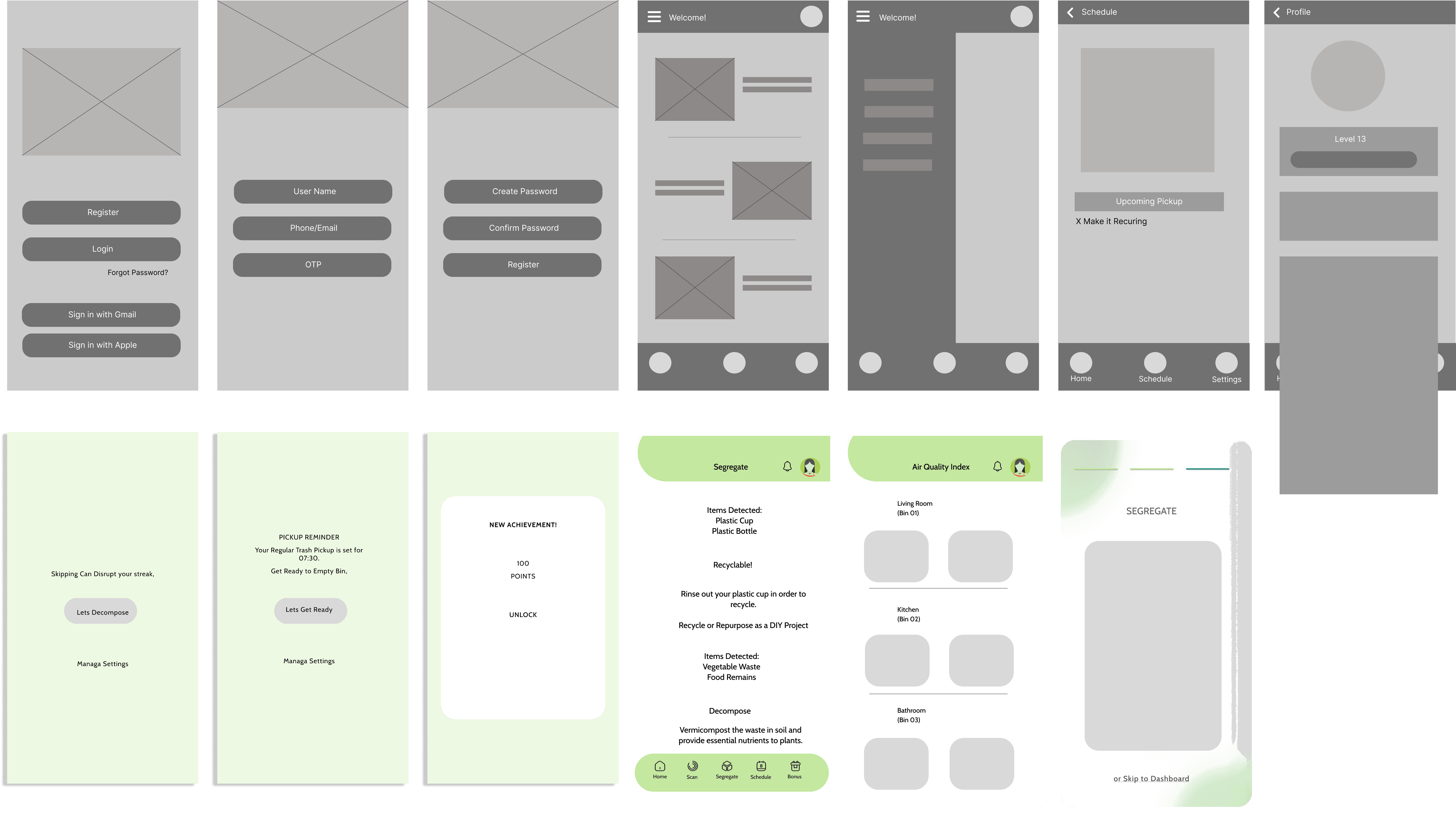 I designed the entire product from scratch and established the scope of the application. The process started with intense research of various existing market products and the crucial issues faced regarding waste management at an individual level. I then created wireframes, mockups and interactive prototypes for the application.